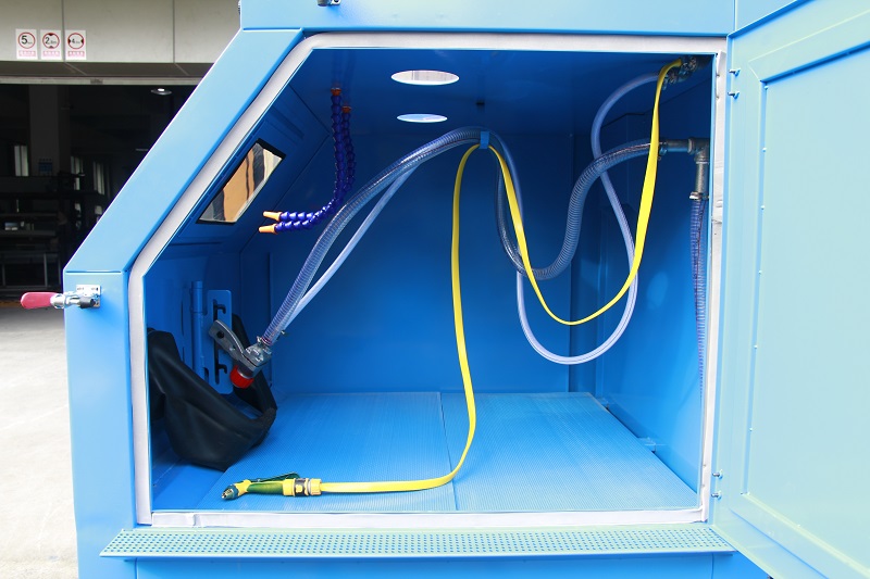 If in your workshop running water is not available there, or worrying about waste water disposal, a closed loop wet blast cabinet is a good choice.